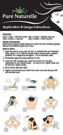 Ideally use an organic herbal shampoo to wash hair and dry before applying Manas Pure Naturelle Organic hair colour